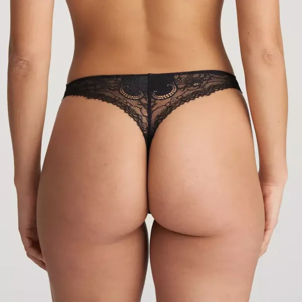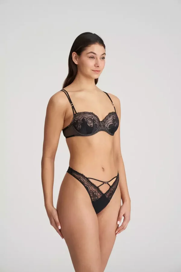 Deze string met Italiaanse kant en snakeskin patroon geeft je lingeriesetje een extra verleidelijke touch.