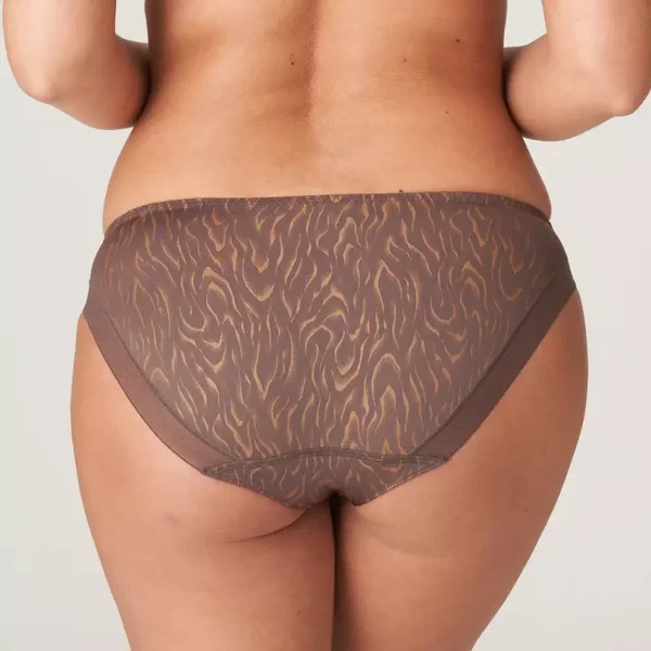 Glad rioslipje van glanzende satijnstof met een zebraprint van gouden stardust. Speelse tule aan de benen maakt je look af.