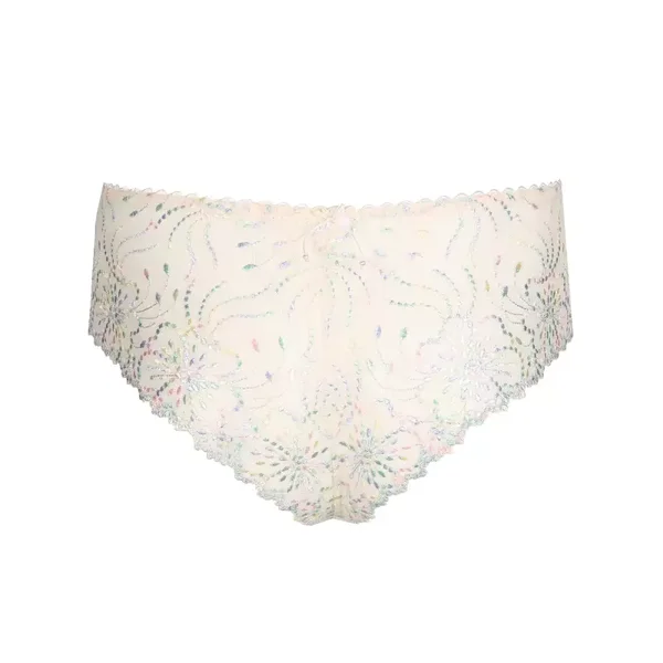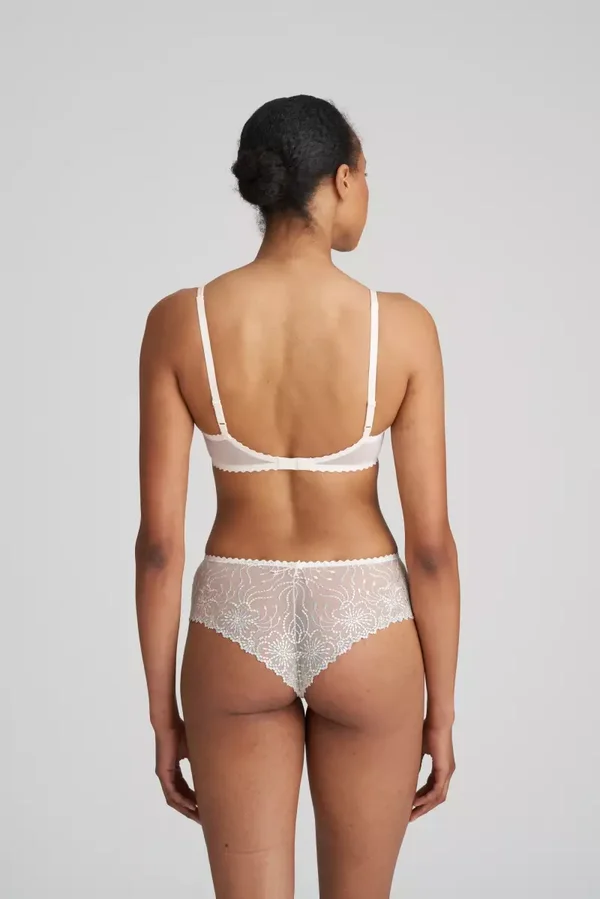 Het verleidelijke design van deze luxestring is volledig ontworpen in transparante tule. Het model valt breder vooraan en komt achteraan tot halverwege je billen.