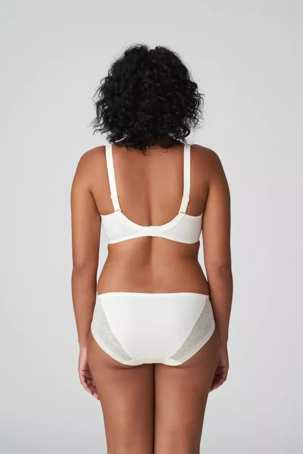 Chique rioslip van glanzende stof met een kantstructuur en broderiestrookjes vooraan.