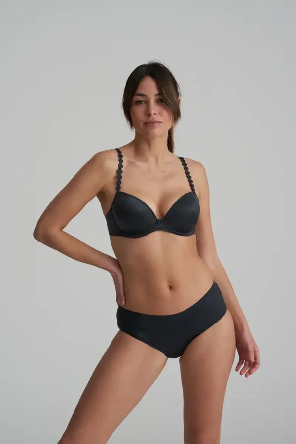 Donker grijs met kopertint in de noppenbandjes voor de extra touch. Deze donkere kleur heeft zowel een tijdloos als sexy karakter.