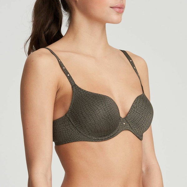De modieuze animal print op een glanzende stof maakt deze mousse bh met hartvormige cups zo onweerstaanbaar.