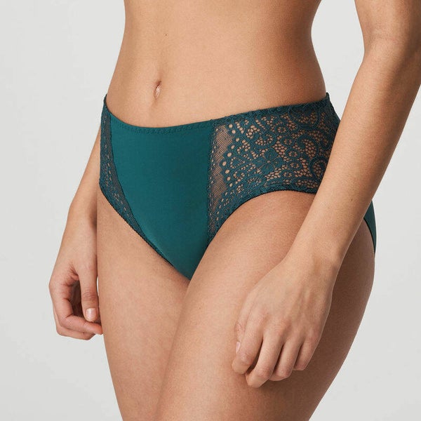 Vintage tailleslip uit een glanzend satijnstofje met trendy ninetieskant aan de zijpanden en op de rug.
