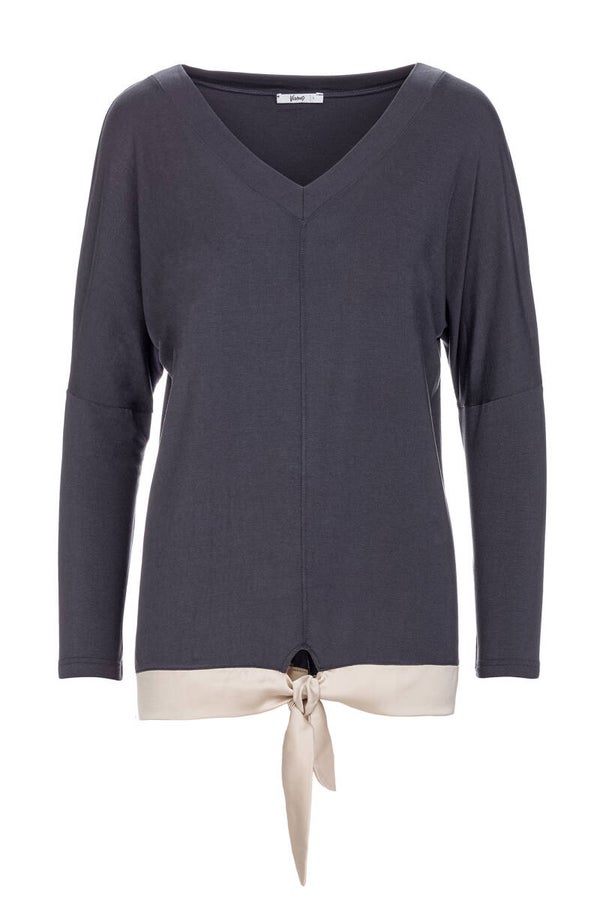 Grijsblauw, Beige Satijn afboording aan onderkant vest.