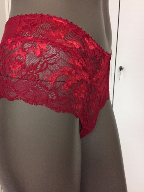 Shorty, volledig in kant met op de rug een veterversiering.