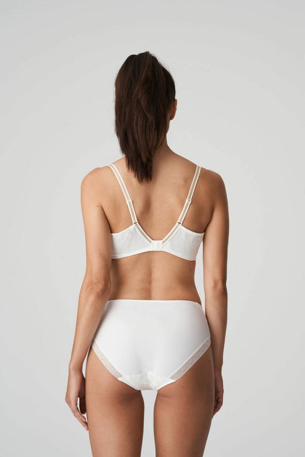 Chic en minimalistisch tailleslipje van fijne tule, met luxueuze gouden accenten. De voorkant met tule is gedubbeld, het rugpand is gemaakt van zachte effen stof.
