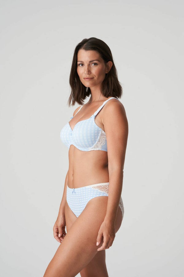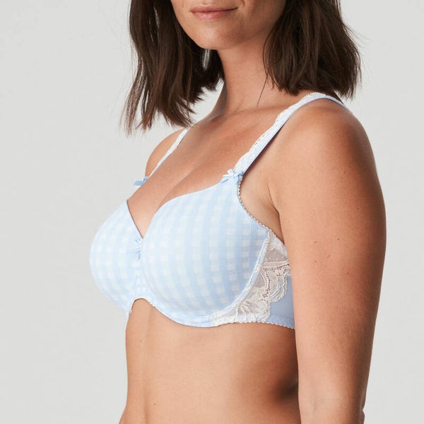 Sierlijke bh van ruitjesstof met hartvormige mousse cups. De kant aan de zijpanden geeft je een vrouwelijke look.