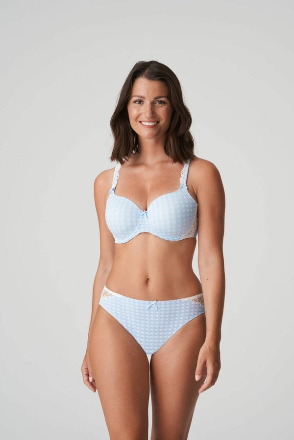 Speels rioslipje van ruitjesstof, luxueus afgewerkt met elastische kant die doorloopt tot op de billen.
