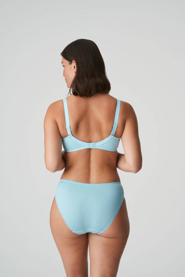 Driedelige beugelbh met een unieke pasvorm en een moderne, luchtige look. Met subtiel glanzende broderie in de cups en schouderbandjes. Met Jelly Blue breng je de zon in je lingerielade. Héél flatterend voor je sunkissed skin!