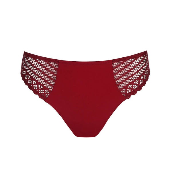 Stylish rioslipje in een effen gesloten stofje, versierd met geometrische kant. Warm, winters en trendy: Rouge Boudoir is een sensuele bordeauxtint.