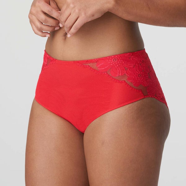 Heel verleidelijk tailleslipje van mesh en coole kant, die doorloopt van het voorpand tot op de rug.