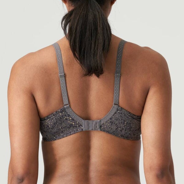 Gladde beugelbh in subtiel glanzende stof met een slangeprint. De straps zijn versierd met gouden studs.