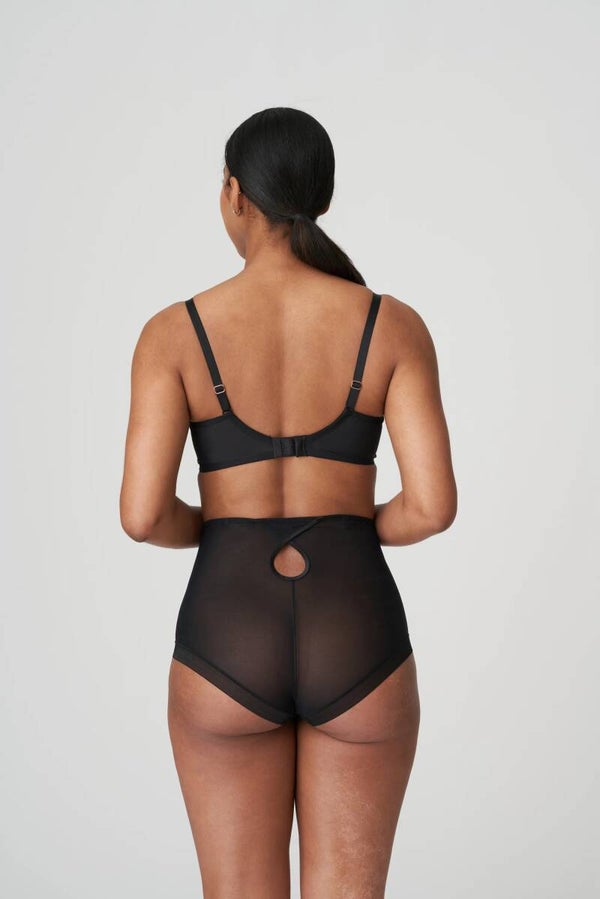 Tailleslip van lasercutbroderie met een lederlook. Met een sexy opening op de rug en afneembare satijnen jarretellelinten. Een sensuele lederlook in stylish