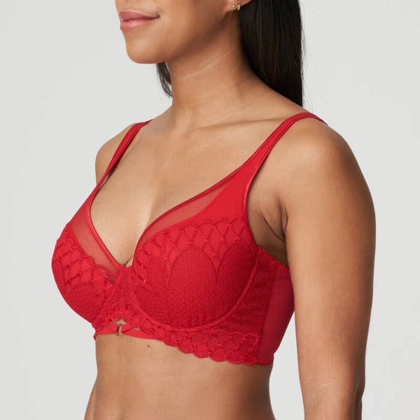 Trendy triangel-bh van semitransparante mesh en broderie. Héél sexy!