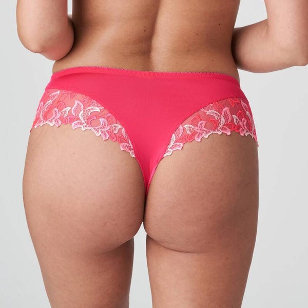 Chique luxestring met extra veel broderie aan de benen. Fel