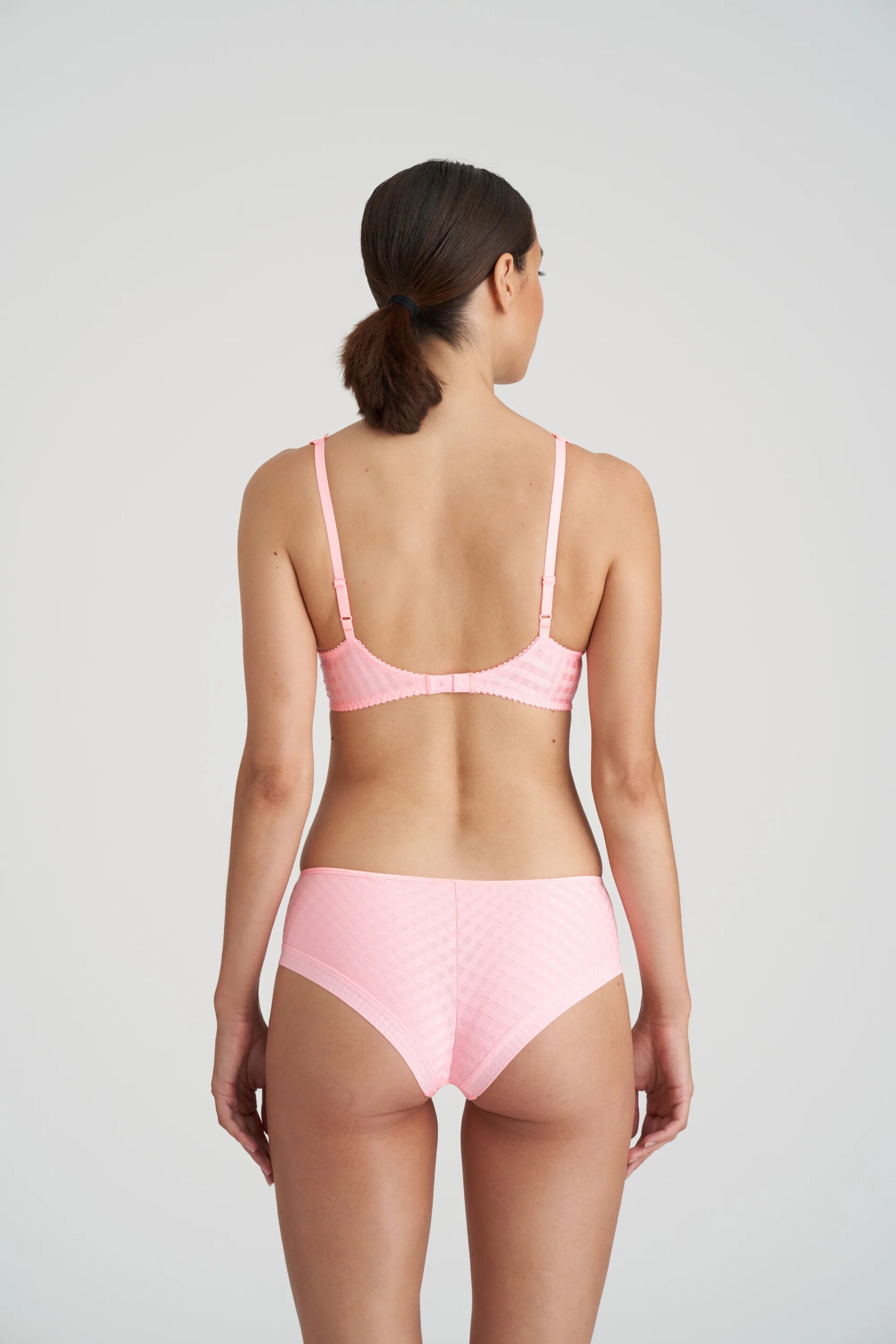 Hotpants hebben vooraan een elegante beenuitsnijding zoals de rioslip en komen achteraan halverwege de billen. Ze zitten laag in de taille. Afgewerkt met twee rijen mooie Avero-bloemetjes vooraan.